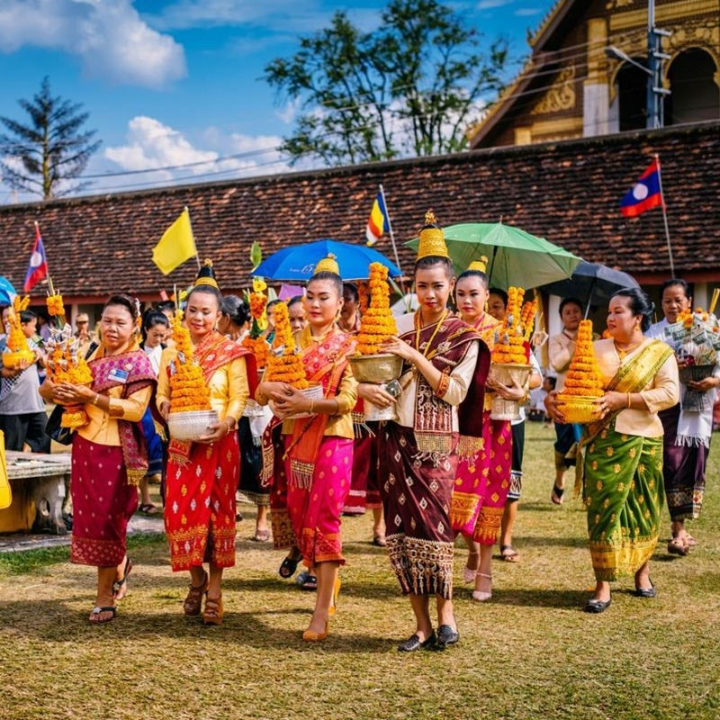 また、ラオスには「タートルアン祭り」という非常に特別な祭りがあり、仏暦12月に1週間行われ、15日にちょうど満月の日に終了します。最も重要な3日間は12月13日から15日までです。全国から多くの人々が「パー・タート・ルアン」への参拝に訪れ、街はランプやキャンドル、花で飾られ、色とりどりの美しい空間が作り出されます。