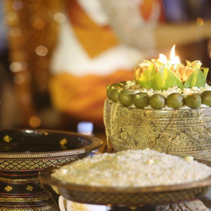 朝には、「バイ・ニュエット・ティエット」(月を拝む祭り)という儀式が始まり、花、もち米、タピオカスープ、サトウキビジュースなどが供え物として用意されます。夜になると、月が昇るのを待って、バナナ、サツマイモ、サトウキビ、タピオカスープ、もち米などを用意して祈りを捧げます。儀式が終わると、年長者が子供たちの口にもち米をたっぷり入れ、家族に良いことが訪れるように願います。祭りの間、カンボジアの人々は、願い事がかなうように月の神に対する願いを込めた灯篭を空に飛ばします。
