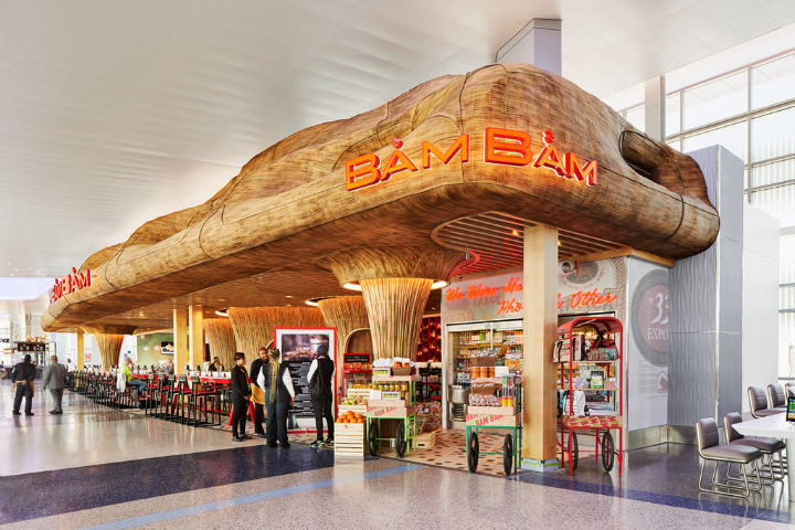 空港内のC5ゲートにあるレストラン「バムバム」は、ヒューストンのベトナムコミュニティの料理とケイジャンの海鮮料理を巧みに組み合わせています。