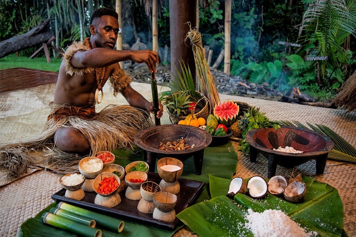 フィジーで最も重要なコミュニティイベントはカヴァの儀式です。カヴァは軽い麻薬成分を含む根の植物で、粉末にして水と混ぜられます。人々は「タノア」と呼ばれる大きなボウルからこの飲み物をすくって飲みます。