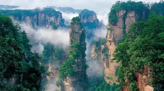 張家界森林公園は、中国湖南省に位置し、ユネスコの世界遺産として登録されています。この公園は、驚異的な自然の美しさを誇り、特に特徴的な柱状の石灰岩の山々がそびえ立っています。これらの独特な地形は、映画『アバター』の「浮遊山脈」のインスピレーションになったと広く知られており、映画のファンや観光客にとって、訪れる価値のある場所となっています。