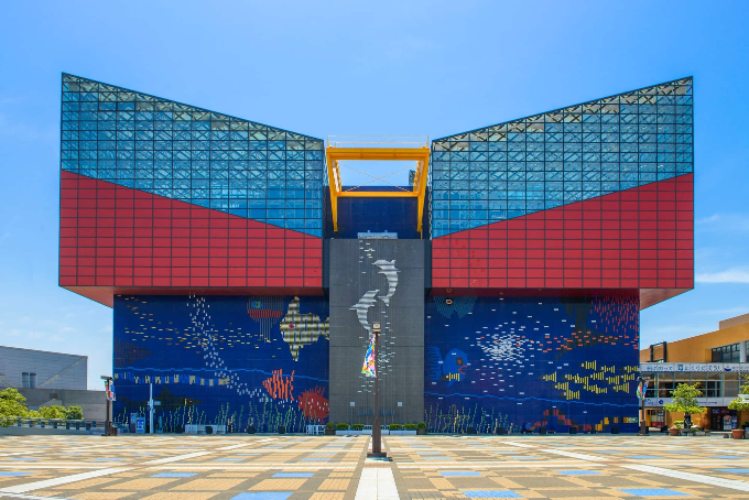 次は、海遊館です。世界最大級の水族館で、個性的な外観が特徴です。特に注目すべきは、ジンベイザメが泳ぐ大水槽です。子供から大人まで楽しめるこの場所では、様々な海の生き物と出会えることができます。