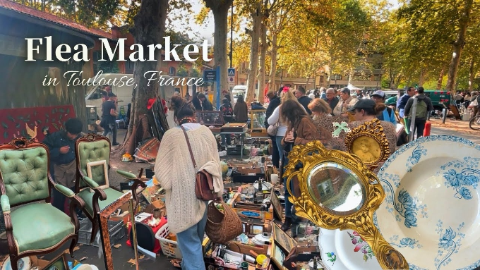 トゥールーズの蚤の市で多くのアンティークや掘り出し物を発見。特にアンティーク食器、手作り品、家具などが印象的だった。商品の状態が良くないものもあったが、ユニークなデザインや魅力的なアイテムが多く、購入を迷う場面があった。