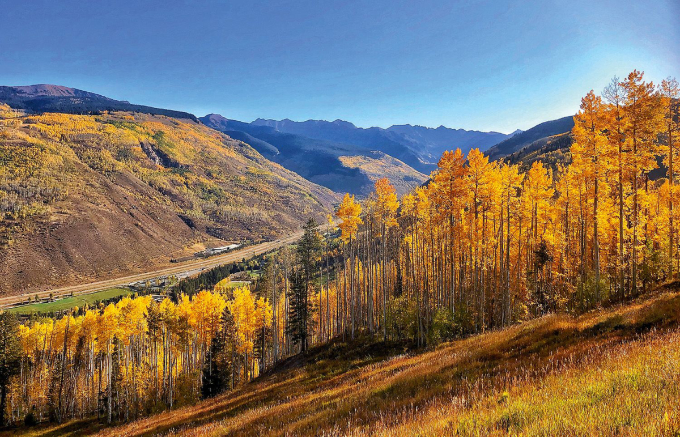 秋のコロラド、特にヴェイルでは、木々が金色に輝く季節。スキーリゾートで知られるこのエリアは、冬が訪れる前にハイキングやサイクリングのスポットとしても大変人気があります。山の風景が息をのむほど美しく、自然愛好家にはたまらない場所です。経験豊富な登山ガイド、ジョン・ケドロウスキーによると、ヴェイルの秋は特に素晴らしいとのこと。「9月中旬から10月下旬にかけて、ミズーリ湖のファンシーパスループでの14kmのハイキングは最高ですよ」と彼は語ります。