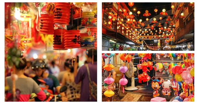 中秋節には、カラフルで多彩なランタンが飾られ、夜には幻想的な景色を楽しめます。