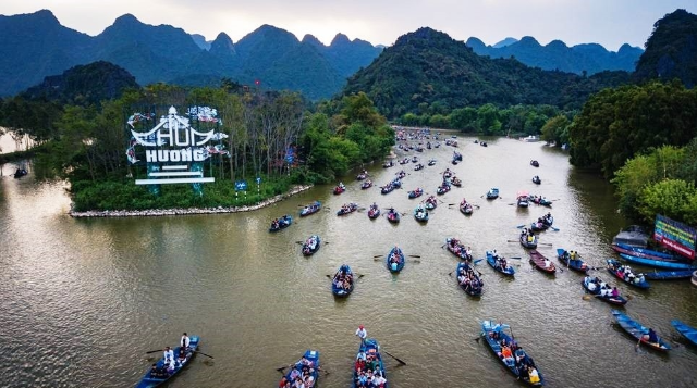 香寺では、毎年旧暦1月中旬から3月にかけて「香寺巡礼祭り(Lễ hội chùa Hương)」が開催されます。この期間中、全国各地から数千人規模の参拝者が集まり、平穏無事・健康・学業成就・家内安全などを祈願します。