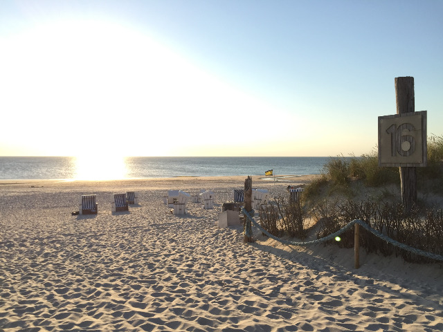 ビーチには、青と白のストライプ柄が特徴のビーチチェア(ストランドコルプ)が並び、ゆったりと日差しを浴びながらリラックスできます。また、夏になるとにぎやかなビーチパーティーも開催され、リゾート気分を満喫できる場所です。