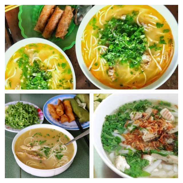 さっぱりとした魚のすり身を揚げたチャーカー(chả cá)をのせたブン(米麺)料理。