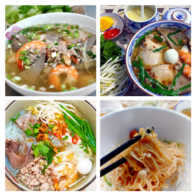 - 麺:米粉の透明なフーティウや、タピオカ粉を混ぜたコシのある麺。