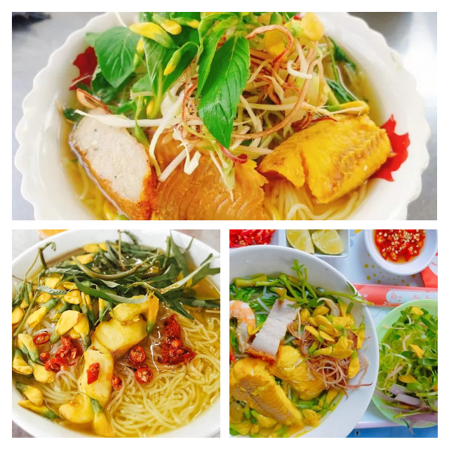 アンザン省ロンスエン市の郷土料理で、ターメリックを使った黄色いスープが特徴です。