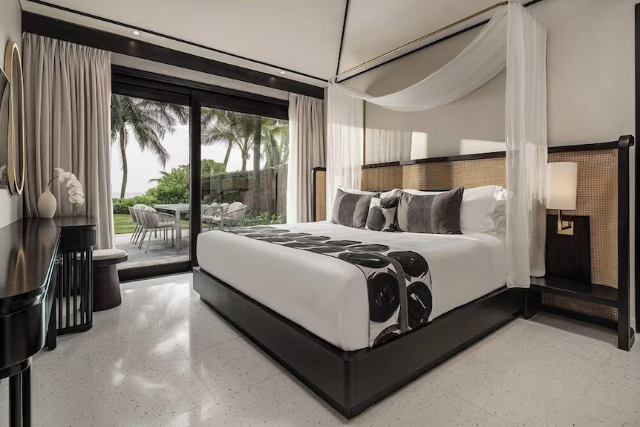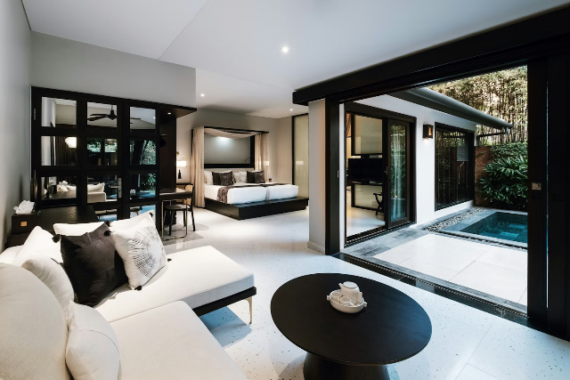 客室はモダンで洗練されたデザインが魅力で、客室・スイート・プール付きヴィラの3タイプを用意。大きな窓から自然光が差し込み、開放感のある空間でリラックスできます。ヴィラタイプではプライベートプール付きの贅沢な滞在が可能で、ビーチフロントヴィラでは海を望む非日常の時間を満喫できます。