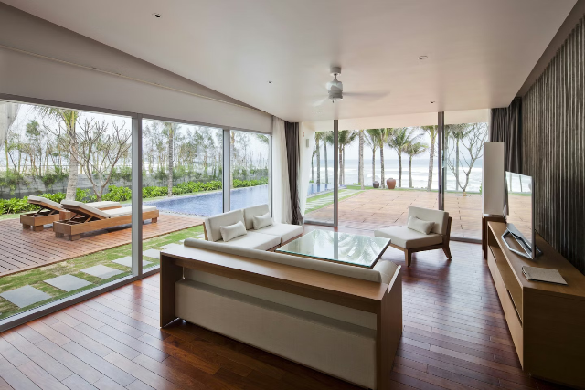 客室は198室の客室・スイートに加え、70棟のプールヴィラを完備。ベトナムの伝統美を取り入れた上品で落ち着いたインテリアが特徴です。全室テラスまたはプライベートバルコニー付きで、トロピカルガーデンやビーチの景色を満喫できます。大理石を使用した広々としたバスルームも、快適な滞在を支えてくれます。