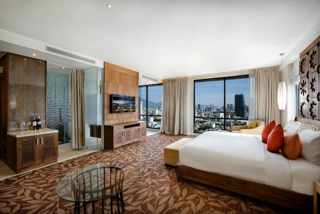 館内レストランでは多国籍料理を楽しめ、19階にあるルーフトップバーからはダナンの美しい夜景を一望。屋内プールはガラス張りで、ドラゴンブリッジを眺めながら泳げるのも魅力です。スパでは本格的なタイ式マッサージを体験でき、観光とリラックスを両立できる市内型ホテルとして人気があります。